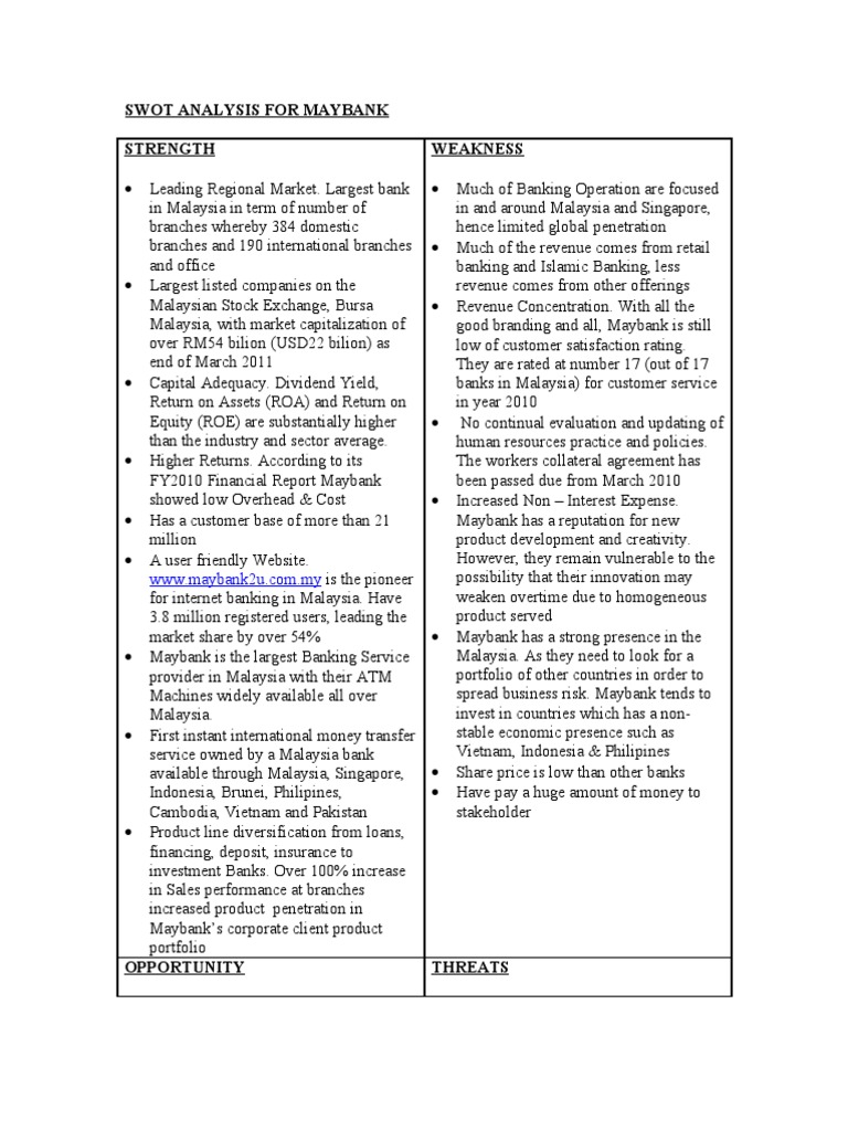 Swot analysis is a vital strategic planning tool that can be used by ing (banking) managers to do a situational analysis of the firm. Swot (strengths, weaknesses, opportunities, and threats) analysis is a framework used to evaluate a company's competitive position and to develop strategic planning. Analyzing the key strengths, weaknesses, opportunities, and performing a credit union swot analysis can help find key strengths, weaknesses, opportunities. Swot analysis is a proven management framework which enables a brand like standard bank to benchmark its business & performance as compared to the competitors. Swot analysis swot analysis is done for a company, to find out its overall strengths.